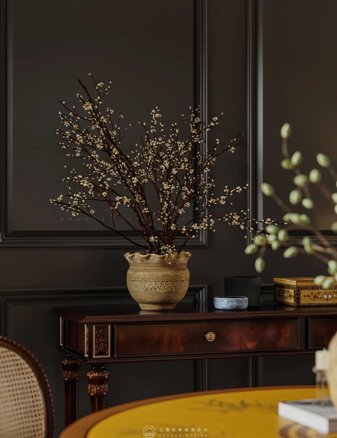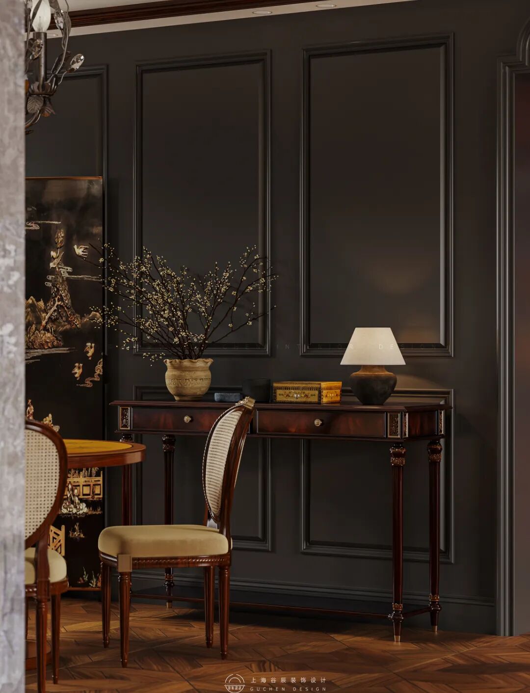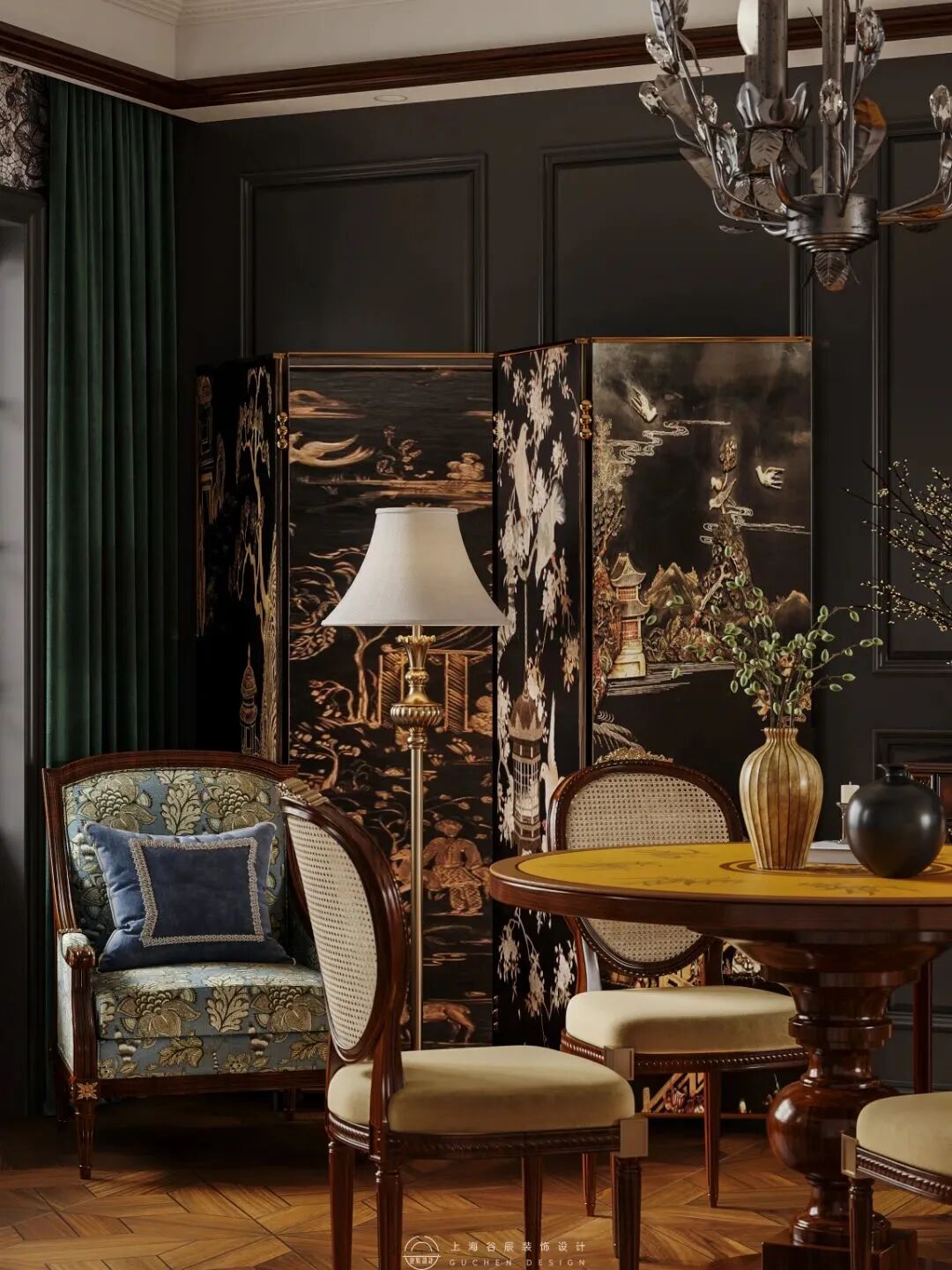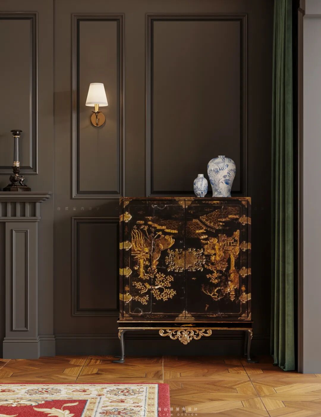 本期分享的是一个精致优雅的70后金融从业者,闲暇时爱好品茗、收藏具有深厚历史韵味的老物件,同时,欣赏雅致的传统中式美,又能体味具有浪漫风情的复古西洋风,本套主要用于居住的宽敞住宅,在设计改造时将中式与西式完美融合,互相映衬,从处处细节中都透露着屋主对生活的态度与热爱,浓浓的复古风的情调跃然而出。 中式沉稳大气,西式繁复精美 复古的家具,华丽的色彩,不失为一种古典的时尚 本案以复古元素为设计中心,融入中西式经典特征设计,处处彰显着贵族生活的品味,以大胆的颜色运用和夸张的艺术品而彰显设计感,整体色调为沉稳的深色,简约的纯色与精美。 华丽的壁纸与摆件交织成一幅上世纪八十年代贵族般品味生活情调的写实画,完美还原屋主心中的复古情怀。 ◇ A D D R E S S | 紫 金 城 A P A R T M E N T | 三 房 两 厅 两 卫 S Q U A R E M E T E R S | 1 4 5 ㎡ D E S I G N E R | 上 海 谷 辰 设 计 ◇
