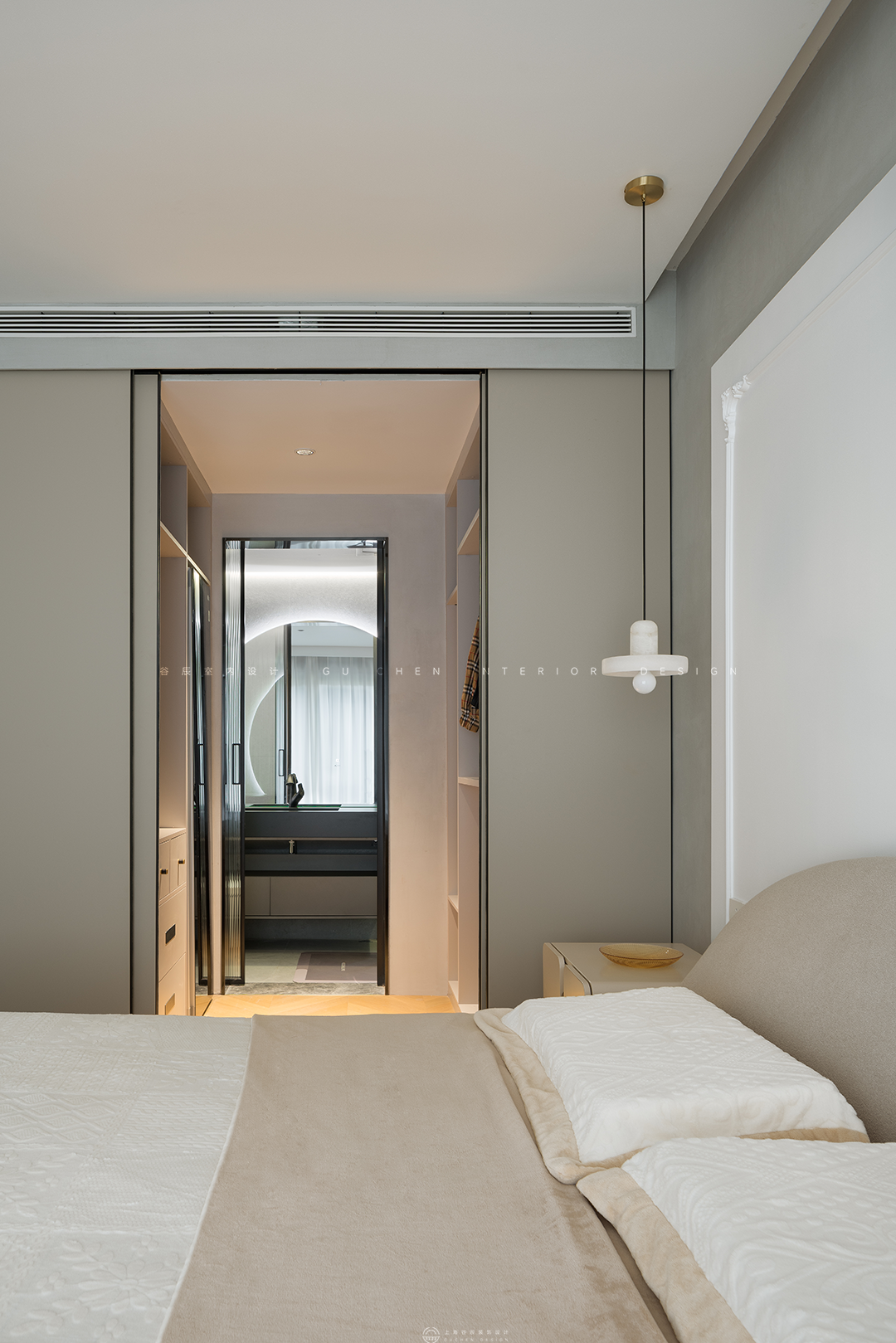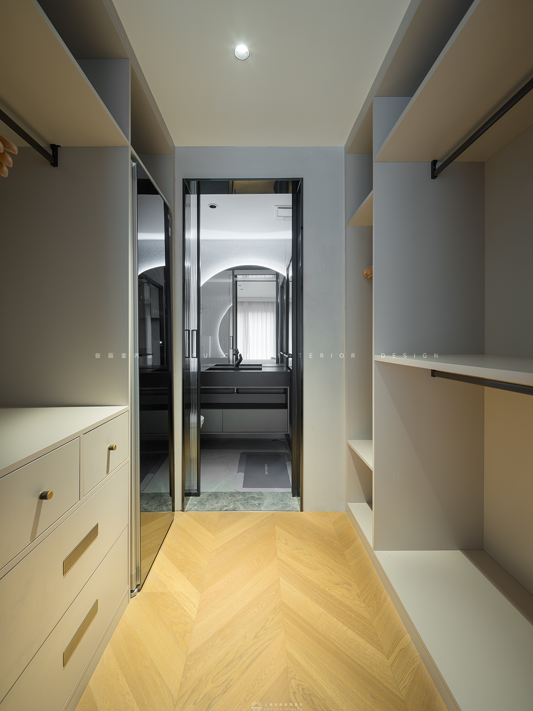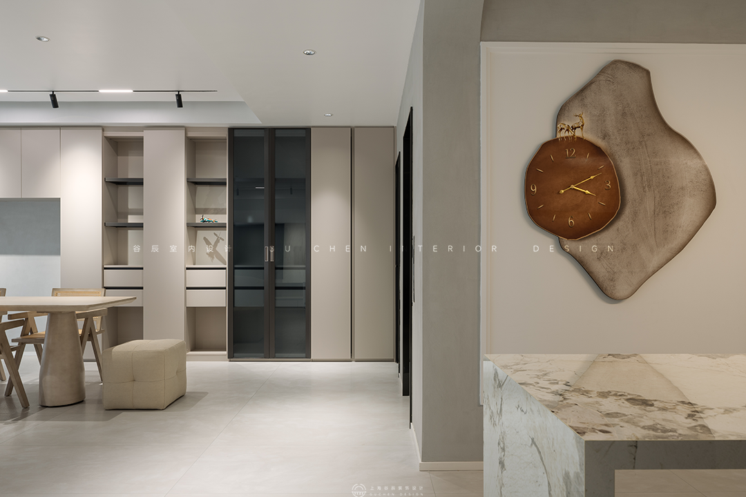 一门到顶无拉手设计的储物柜极大增满足了客户的储物需求的同时给空间增添了轻奢感。